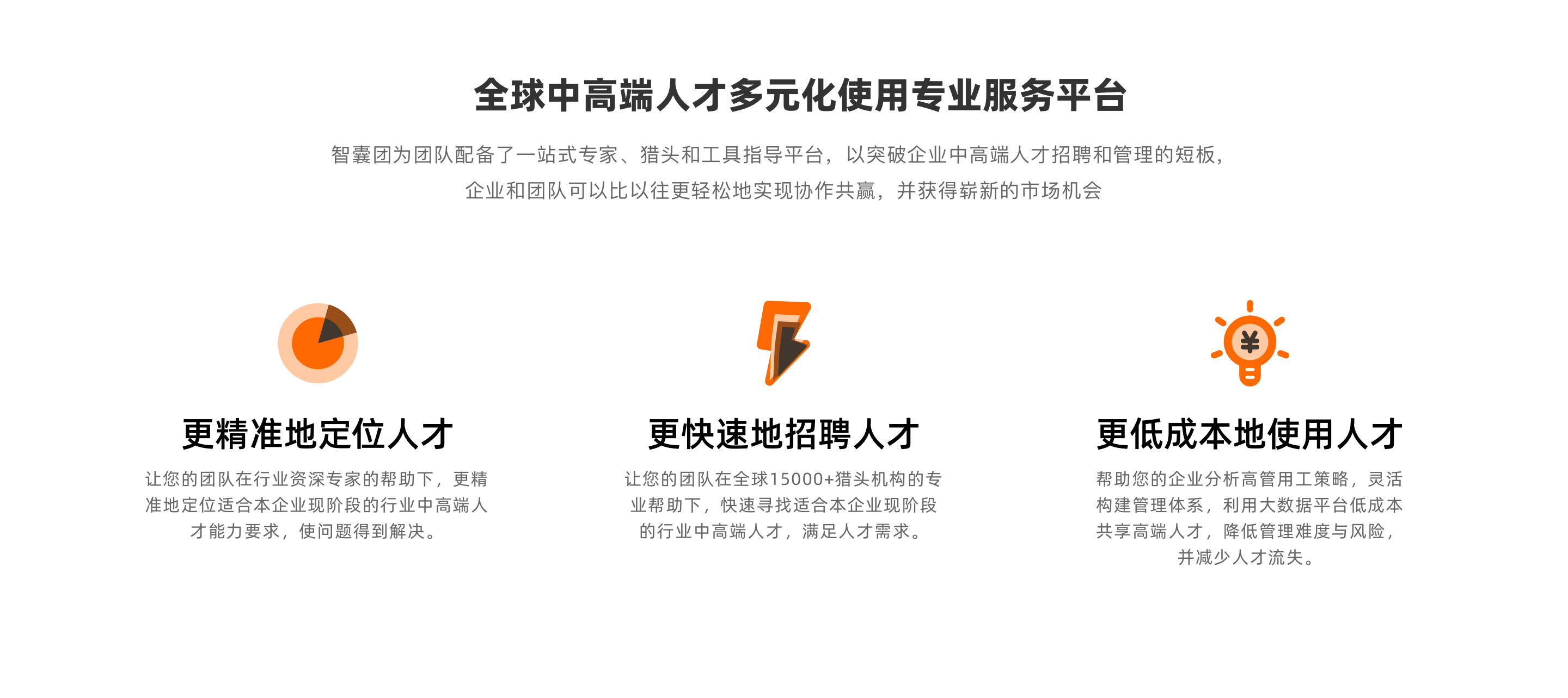 智囊团全面改善并重塑猎头服务,为客户提供“找得准,用得好”的猎头体验。